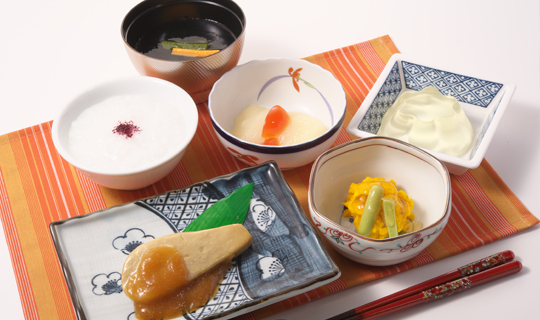 調理用の水や飲料水はもちろん、館内のどの蛇口をひねっても「健康イオン水」が出てきます。食材にも気を配り、季節やイベント、お体の状態に応じた献立でお食事をお楽しみ頂けます。